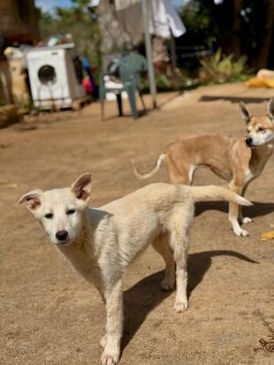 BRANCO e FILO, due fratellini, poco più di 3 mesi, Incr. JINDO COREANO, futura taglia media, trovati a 2 mesi di vita, magri scheletrici, sembravano 2 fantasmini, che faticavano reggersi sulle zampine, la cosa abominevole, l’indifferenza di chi ogni giorni li vedeva e non ha pensato di metterli in sicurezza, VOLEVANO VEDERLI MORIRE DI FAME?????