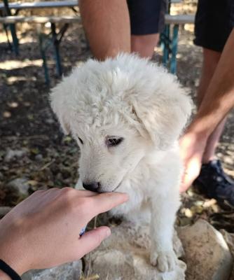 Bellissimo simil maremmano lasciato sotto il sole cocente tra pietre e steppaglie. Età 2/3 mesi, carattere dolcissimo. Per info 3281028447 Lasciare un messaggio di presentazione sarete ricontattati