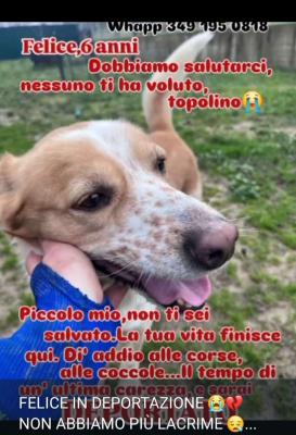 MA IL SUO SORRISO,LA SUA INDOLE NON HANNO CONQUISTATO NESSUNO: ED ANCHE FELICE,COME TUTTI I CAGNOLINI CHE ATTRAVERSANO LA VITA COMPLETAMENTE IGNORATI,COME FOSSERO TRASPARENTI, ANCHE LUI ,PURTROPPO, FINIRÀ DIMENTICATO IN UN BOX