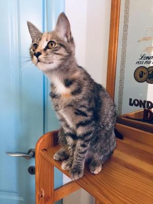 Dixie è una gattina di quasi cinque mesi, dolcissima, curiosa, vivace, equilibrata e socievolissima con tutti, nonostante abbia già conosciuto tutta la meschinità di cui l'essere umano è capace. Ritrovata in un cassonetto assieme alla sorellina Pixie (felicemente adottata!) quando aveva solo cinque giorni, è cresciuta allattata a biberon e proprio per questo, con le persone, ha un rapporto davvero speciale: è fiduciosa, affettuosissima, adora il contatto e le piace accoccolarsi sulle ginocchia, addormentandosi tra mille fusa. Ma poi, l'avete visto quel bellissimo cuoricino disegnato sul suo naso? E il meraviglioso colore del suo pelo, pieno di sfumature? Insomma, è davvero un sacrilegio che questa principessa sia ancora in attesa di una famiglia. Allora, chi si fa avanti? Dixie si trova a Pesaro, ma la portiamo personalmente anche al centro e nord Italia, facendola viaggiare in totale sicurezza con i nostri mezzi. Cerchiamo adozione in appartamento con balconi e finestre in sicurezza (reti e/o zanzariere apposite), preferibilmente presso famiglia con almeno un altro gatto socievole. Dixie è stata trattata per tutti i parassiti, vaccinata (trivalente) e testata fiv e felv negativa.