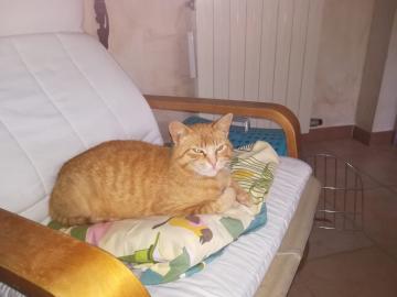Prov. Ivrea Ciao a tutti, Stiamo cercando una casa per Francis, un bellissimo e affettuoso gattino rosso di circa 9 mesi. Francis è un gattino randagio che vive in una borgata di Issiglio (TO), è molto affettuoso e passerebbe la giornata a farsi fare le coccole. Io ho incominciato ad accudirlo quattro mesi fa quando mi sono trasferita, e inizialmente mangiava in giardino dove in una zona riparata avevo anche messo una cesta con dèi vecchi maglioni caldi. Ora lui viene spesso in casa, io lo lasciò fare e a volte dorme sulla poltrona in camera. Lo sto ospitando con gioia ma purtroppo non posso tenerlo perché ho già due gatte e un cane anche se fargli le coccole è proprio un gran piacere. Quello che Francis cerca è affetto, dolcezza e sicurezza. È già sterilizzato e essendo cresciuto all'aperto per lui cerco una persona o una famiglia con giardino. Grazie dì cuore a tutti. 3485247850 fiorenzarego@gmail.com »