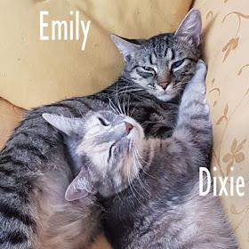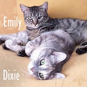 Ciao, siamo Emily e Dixie, due creature colpite dalla sfortuna che si sono unite per la vita. Siamo tanto legate da essere diventate inseparabili... Dormiamo insieme, mangiamo insieme, giochiamo insieme... facciamo tutto insieme! E insieme potremmo raddoppiare la tua gioia: perché siamo micine tanto dolci, abituate alla casa e molto bene educate! Dixie è una tricolore diluita ed io sono una tigratina bellissima.  Sono nata con una macchietta opaca sull'occhio ma non è nulla di grave, solo una particolarità che mi contraddistingue, insieme alla dolcezza e un accenno di timidezza.  Anche per questo vorrei trovare casa insieme alla mia sorellina Dixie: con lei mi sento completamente a mio agio e sono anche più socievole! Dixie è più estroversa di me, si fida subito delle persone e se lei si fida, allora anch'io mi fido. Se pensi di prendere un gatto... perché non prenderne direttamente due già abituati insieme?