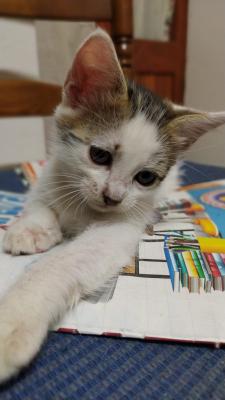 Sto facendo da tramite che chi la tiene al momento. Lei è l'unica gattina rimasta della sua cucciolata, gli altri hanno tutti trovato una casa. Ha all'incirca due mesi e si trova a Uri, nella provincia di Sassari. È urgentissimo trovarle una casa. Vi prego di contattarmi se interessati.