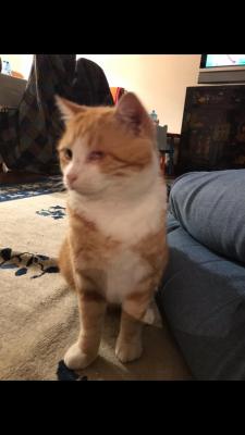 Micio Giorgio gatto smarrito sabato 19 settembre zona Patta a Ranica, non ha l'occhio sinistra,ha il microchip , castrato, è molto affettuoso.