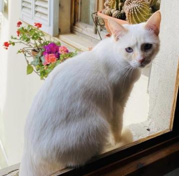Si è persa oggi Briscola la mostra gatta bianca in via ghibellina Per favore se la triavate contattarmi 339 6621812 grazie