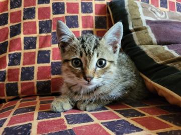 Boo si è giocata già un paio di vite, ora ha bisogno di una casa e di tanto amore. È stata sverminata e trattata con antiparassitario. Primo vaccino appena possibile. Verrà affidata con obbligo di sterilizzazione da adulta, previo controlli pre/post affido. Compatibile con gatti e cani. No giardini, se non in sicurezza.