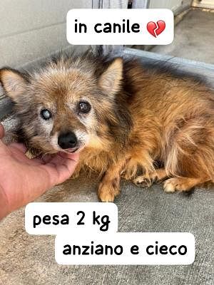 ADOZIONE DEL CUORE: SPILLO, 2 kILI, TAGLIA TOY, ANZIANO E CIECO, E' IN CANILE.