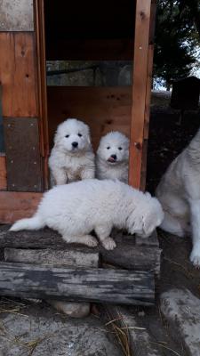 Cuccioli di pastore abbruzzese di circa un mese. Pelo lungo bianco. Sono molto socievoli e sono già abituati a vivere con altri animali.