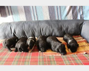 Il Cao de Agua è un'antica razza portoghese, è stato utilizzato per secoli,dai pescatori,come ausiliario nella loro attività.Dal suo antico lavoro ha ereditato la grande passione per l'acqua e lo spirito di collaborazione con i compagni umani.Cane ideale per tutte le attività cinofile,non disdegna il divano di casa sul quale non lascia tracce, perché non perde pelo.La cucciolata è frutto di una lunga ricerca per trovare il principe azzurro ideale per la nostra cagnolina, entrambi i genitori sono stati sottoposti ai test per escludere la presenza di patologie ereditarie.I cuccioli sono portatori di importanti linee genetiche e presentano tutte le possibili varianti di pelo e colore.Sarò lieto di fornirvi qualsiasi ulteriore informazione contattare