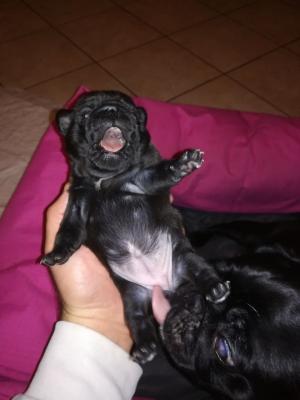 Ultima Cucciola di Carlino Nero con macchia bianca sul petto disponibile, sarà dal 22 maggio 2018 con primo vaccino, microchip, ciclo completo di sverminazione, attestato di buona salute e kit cucciolo con tante belle cose costose! La mamma è visibile da noi in casa, sono italiani 100 (non sono dell' EST EUROPA) chiamate per altre info foto o per venirli a vedere.