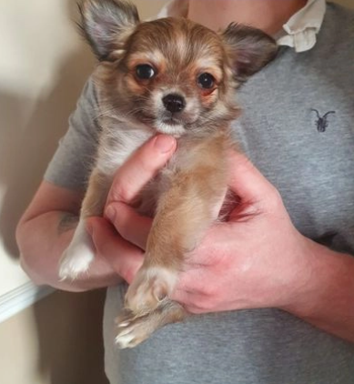 Disponibile cucciolo di chihuahua maschio color bianco crema portatore di linea esotica colori cioccolato e lilac merle nato il 10/02/2022 di 3 mesi taglia standard per la razza. Il cucciolo sarà consegnato con: libretto sanitario con timbro veterinario, ciclo completo di sverminazioni, ciclo completo