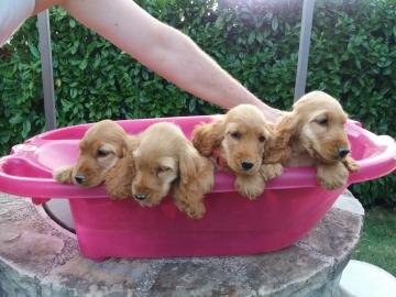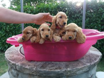 Disponibili da subito bellissimi Cocker nati il 30/5/19 da genitori provenienti da noto allevamento umbro. I cuccioli godono di ottima salute e saranno consegnati con microchip,ciclo di sverminazioni, vaccini,libretto sanitario e pedigree enci. Prezzo 350 euro.