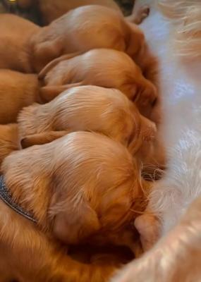 Strepitosi cucciolotti di cocker spaniel fulvi, maschio e femminuccia