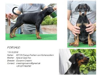 Cuccioli Dobermann con pedigree, microchip, iscrizione Asl, vaccinati, sverminati, per visionare documenti di salute e lavoro dei genitori invio tramite mail o watsup