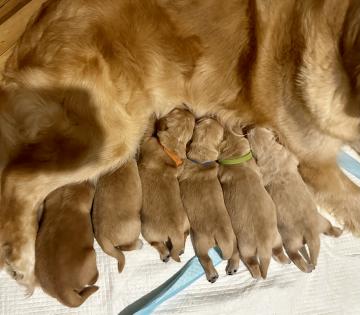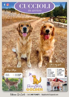 Disponibili a partire da fine luglio, meravigliosa cucciolata di Golden Retriever linea inglese. Genitori testati ed esenti displasia anche e gomiti, ecocardio ok, visita oculistica ok, test genetici per atrofia progressiva retina, lipofuscinosi, ittiosi, osteogenesi imperfetta e distrofia muscolare del golden. I cuccioli verranno consegnati con iscrizione anagrafe canina (microchip), sverminati, vaccinati e iscrizione al Libro Italiano delle Origini (pedigree).