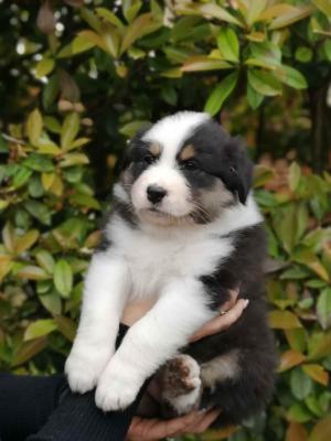 Disponibili 1 maschi e 1 femmina nati il'12 marzo 2019, di Australian Shepherd tricolore nero che trovate in foto.