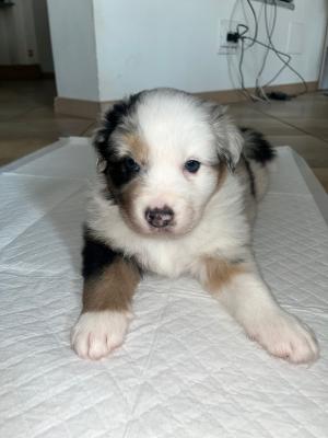 Cucciole di pastore australiano con pedigree, vaccinazione, sverminazione, visita oculistica fsa. Genitori con i test genetici della razza e lastre certificate. Nate il 21 febbraio e pronte per la loro nuova casa per fine aprile.