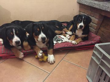 Disponibili cuccioli di Grande Bovaro Svizzero nati il 6 agosto. I genitori (madre Alexa Podlesi Kosire, Roi 15159772 - padre Balto, Roi 15144395), rispettano pienamente lo standard di razza ed hanno ottimo carattere, oltre che belle focature e buona corporatura. Entrambi esenti da displasia e altre patologie. I loro bellissimi cuccioli sono allevati in famiglia e socializzati con amore e particolare attenzione; hanno bei colori e stanno mostrando ottime doti caratteriali. Verranno ceduti solo a veri amanti della razza sverminati e vaccinati, con microchip e libretto sanitario. Per informazioni chiamare n 338 99 888 37 (Laura Prioni)