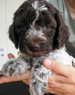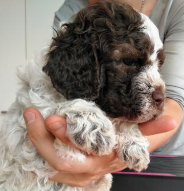 Cuccioli maschi disponibili dai primi di ottobre con un Pedigree di alta genealogia. PADRE campione italiano di bellezza e riproduttore selezionato. MADRE ha vinto diversi CAC e CACIB in esposizioni nazionali ed internazionali. Entrambi hanno effettuato i test genetici delle malattie tipiche della razza. Entrambi hanno il certificato per la displasia dell’anca “A” (esente) registrato sul pedigree, hanno depositato il campione biologico presso l’ENCI e hanno partecipato alle prove di cerca del tartufo. Saranno ceduti con microchip, iscrizione all’anagrafe canina, vaccinati e sverminati. Il Lagotto Romagnolo è docile, poco esigente, attento, affettuoso, molto attaccato al suo padrone e facile da addestrare. E’ un cane specializzato nella ricerca del tartufo, ma anche affettuoso compagno di vita per ogni genere di famiglia. Non perdono pelo.
