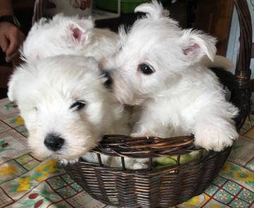 Disponibili cuccioli West Highland White Terrier nati il 20 marzo. I cuccioli sono vaccinati, con microchip, pedigree ottima genealogia, affisso allevatore ENCI. Per info tel. 392 3283898