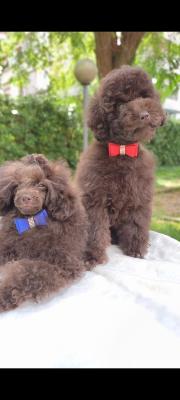 Disponibile maschio barboncino marrone scuro cioccolato fondente nato 21 febbraio 2023 ha 2 vaccini genitori sono visibili.