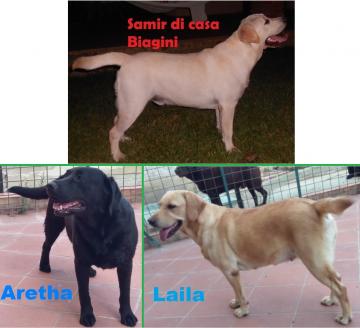 Allevamento amatoriale vende 2 cucciolate di colore miele e nero -soprattutto miele (vedi foto)-, con soggetti di entrambi i sessi, i cui genitori discendono da soggetti ceduti dall'allevamento professionale maggiormente insignito negli ultimi anni dei titoli di miglior allevamento Enci di Labrador italiano. Di alta genealogia e con pedigree italiano, i cuccioli sono esattamente quelli ritratti sulle foto, chiaramente ideali per esposizioni o compagnia e saranno consegnati in tutto il centro-sud Italia sverminati, vaccinati, microchippati, con libretto sanitario, pedigree italiano ROI dei genitori e certificazione veterinaria. I genitori, discendenti da vari campioni nazionali ed internazionali dell'omonimo allevamento, sono Samir di casa Biagini, Aretha e Laila.