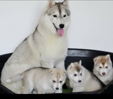 favolosi cuccioli di husky di alta genetica- puro sangue americano " nati il 23.05.2021 e saranno veduti dopo 60gg con tutti i trattamenti sanitari e veterinari completi- microchip- pedigree a seguito- figli di campioni nazionali ed esteri di bellezza- cuccioli dolcissimi e senza difetti genetici- i cani sono testati alla displasia gomito ed anca esente - tutti test ufficiali- i cuccioli saranno seguiti a livello comportamentale e primo imprinting- Felice
