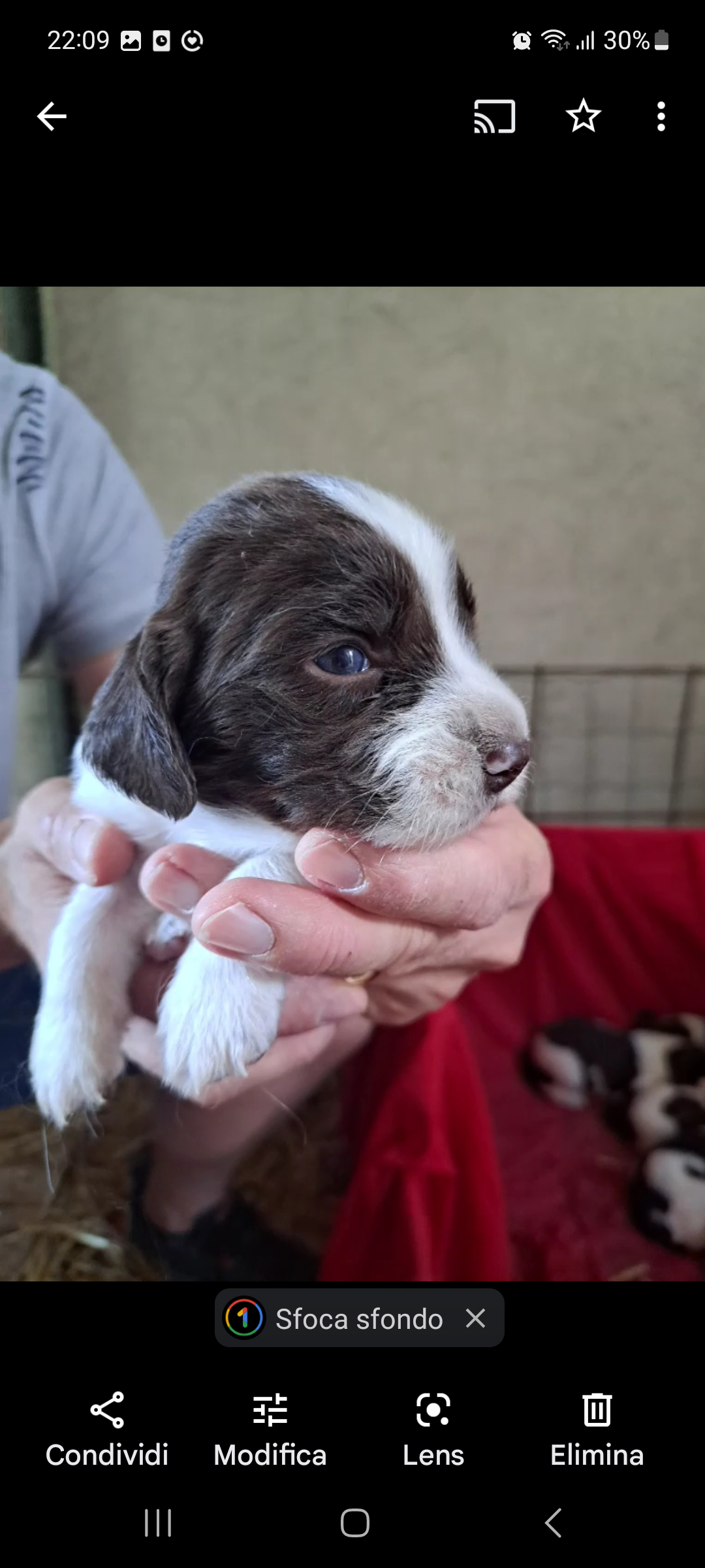 Vendo cuccioli di Springer Spaniel Inglese colore bianco e fegato nati il 23 maggio 2023. Ottimi cani da caccia e ricerca tartufo.