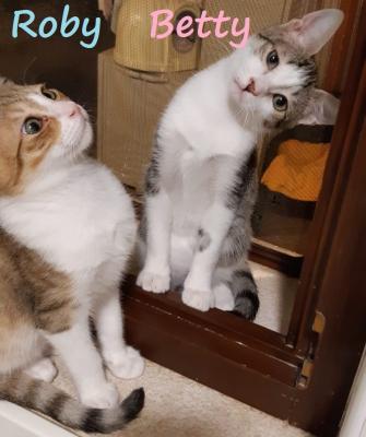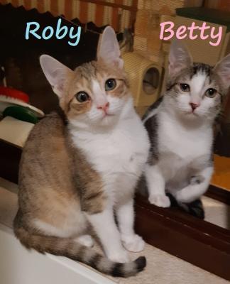Loro sono due splendidi micini di circa 3 mesi. Si chiamano Betty e Roby e sono stati salvati dalla strada quando erano piccoli. Sono abituati a vivere in appartamento con altri cani e gatti.