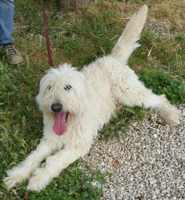 Lui patisce molto la reclusione della gabbia e per lui cerchiamo un'adozione in casa con giardino.