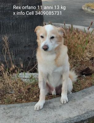 REX 11 anni,13 kg rimasto orfano del suo adorato proprietario che è mancato improvvisamente e ora dopo una vita di attenzioni e coccole Rex rischia di finire in canile!!Rex gode di ottima salute,negativo alle malattie mediterranee,è dolcissimo,molto affettuoso e buono con tutti,ben socializzato con i suoi simili,va perfettamente al guinzaglio e anche senza non si allontana,adora passeggiare.Per Rex cerchiamo una famiglia che lo accolga con amore.Si trova in Calabria e si affida vaccinato,castrato e chippato al centro nord Italia dopo iter adozione.Per info cell 3409085731,grazie