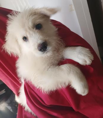 Romolo meraviglioso cucciolo bianco in box si dispera