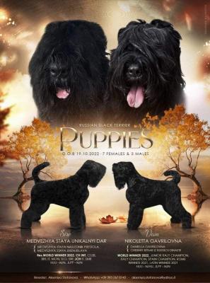 DISPONIBILI CUCCIOLI DI TERRIER NERO RUSSO I genitori ,importati dalla Russia ed entrambi multicampioni, vivono in Italia e perciò eventualmente visibili.possibili foto tramite WatsApp. Per info Akseniya. 3937670143