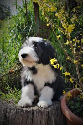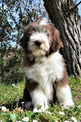 Disponibili cuccioli bianchi-neri e bianchi-marroni di BEARDED COLLIE (non Border Collie), il meraviglioso collie barbuto noto per la caratteristica lunghezza del pelo e l'eleganza innata. Il Beardie è un cane da pastore di taglia media molto socievole verso tutti (persone e animali in genere), allegro, estroverso, adatto a persone di qualsiasi età - bambini compresi - sempre pronto a seguire i suoi "padroni" ovunque perché molto versatile e desideroso di compiacere i propri esseri umani. La sua indole vivace e mai aggressiva lo rende un compagno ideale, plasmabile a seconda della vita che gli si propone. E' un cane da pastore e di esso conserva la tipicità e la robustezza , adatto anche per varie attività fra cui l'agility dog. Ha solo una muta (da cucciolo a adulto), e con una buona spazzolata settimanale, qualche accortezza e un po' di pratica, si potrà avere quel bel pelo lungo che lo rende così affascinante, ma se lo si sceglie per il suo carattere quasi unico, lo si potrà mantenere a pelo corto senza troppo rammarico. Solo chi ha avuto la fortuna di incontrarne uno può comprendere la gioia del vivergli accanto.
