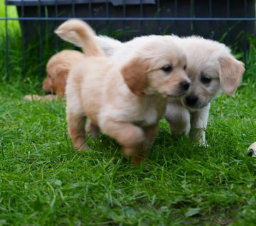 MERAVIGLIOSI CUCCIOLI DI Golden Retriever(MASCHI E FEMMINE) Meravigliosi cuccioli di Golden Retriever (maschi e femmine) I meravigliosi piccoli Golden Retriever hanno visto la luce. I nostri piccoli crescono nel campo circondati da ranuncoli freschi. È la prima cucciolata del nostro adorabile cane. I più piccoli respirano liberamente, con il naso e gli occhi chiari e aperti. Abbiamo deliberatamente deciso di stabilire il nuovo standard! Per noi era importante fornire ai più piccoli geni buoni e sani lungo il loro cammino. Ora è giunto il momento e i piccoli furfanti possono ora trasferirsi in famiglie amorevoli. Ora hanno più di 12 settimane e sono completamente vaccinati! Il giorno del trasferimento i cuccioli sono stati sverminati, microchippati e vaccinati più volte. Ogni cucciolo riceve un passaporto UE e un pedigree VDH, che autorizza il rilascio del pedigree. Inoltre offriamo pacchetti iniziali, una pettorina per cani, un animale di peluche e consigli per continuare a prenderci cura del cucciolo.