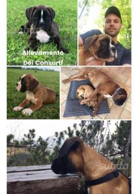 Presso l'Allevamento DEI CONSORTI (Riconosciuto ENCI-FCI) sono disponibili splendidi cuccioli di Boxer. Tutti i cuccioli verranno ceduti al termine del periodo di svezzamento (60 giorni!!). Saranno consegnati con pedigree ENCI delle linee di sangue più prestigiose Europee, microchip con iscrizione all'anagrafe canina, libretto sanitario, vaccini e multiple sverminazioni. Per la legislazione italiana la vendita di cani proposti come "di razza", senza che questa qualità sia attestata dal pedigree, è vietata dal Decreto Legislativo n. 529 del 30 dicembre 1992. Ci troviamo a Palmanova in provincia di Udine. La consegna del cucciolo può essere effettuata in tutta Italia in quanto ci muoviamo spesso per gare canine e prove di lavoro sia in Italia che all'estero! Sono gradite le Visite in allevamento previo appuntamento. Contattatemi per maggiori info!