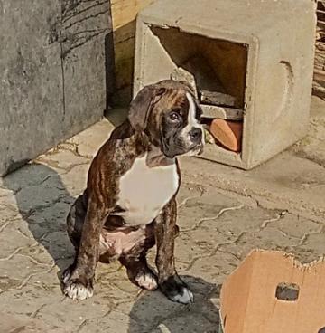 cucciolo di 3 mesi di boxer maschio tigrato già vaccinato microchip libretto sanitario pedegree in corso disponibile subito vendo ottimo carattere giocherellone e socievole