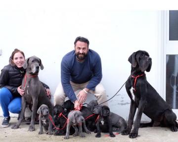 L' allevamento " FAMIGLIA MISCANO" riconosciuto ENCI FCI è lieto di presentarvi LITTER AFRICA, cuccioli blu e neri da blu. Sono cuccioli ben selezionati, infatti, i genitori hanno superato i controlli ufficiali per la displasia di ANCHE e GOMITI, hanno eseguito controlli ufficiali per cardiopatie ereditarie risultando esenti.. vi forniremo tutta la documentazione medica a riguardo. LA MAMMA: CHANEL "KENYA"Famiglia Miscano """RIPRODUTTRICE SELEZIONATA""" DI SEGUITO I CONTROLLI UFFICIALI EFFETTUATI: HDA ED BL; ECOCARDIO OK; CAE-1 OK; DNA DEPOSITATO ; KOERUNG EUDDC SUPERATO. IL PAPA' : SULTAN OF LOVE ;ED 0 : ECOCARDIO OK. Alleviamo da anni dando il massimo nella selezione DELL ALANO Nel nostro allevamento ci sono varie figure professionali da veterinari addetti alla riproduzione animale, a biologi genetisti per eliminare quanto piu' possibile tare genetiche che sono presenti all'interno della nostra razza. Seguiremo sempre il vostro cucciolo prima e il gigante poi. Ricordatevi che sono esseri viventi e saranno con voi per molti anni, avranno bisogno di tempo amore e attenzioni quindi pensateci bene. Noi saremo sempre lieti di parlare di alani quindi non esitate a chiamarci. Siamo presenti anche su facebook(alani della famiglia miscano) e su istagram(alanidellafamiglia_miscano) seguiteci troverete migliaia di foto e IG stories. IN FOTO LA CUCCIOLA IN QUESTIONE; I FRETELLINI(NELLA FOTO DI GRUPPO E' LA PRIMA A SINISTRA) IL PAPA' E LA MAMMA.