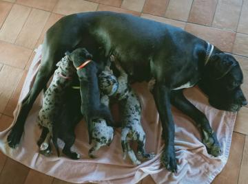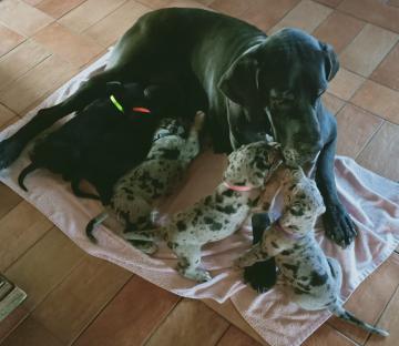 Ciao siamo i Cuccioli dell’Alana Stella. Oggi abbiamo compiuto un mese e siamo pronti ad essere adottati. Chiamate Edoardo al 344 1120852 sarà felice di rispondervi per avere maggiori informazioni.