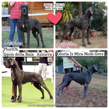 Ultima cucciola femmina alano blu disponbile, da cucciolata nata il 20/07/2021 da prestigiosa linea internazionale. Genitori: pluricampione Ippon della Baia Azzurra (Campione Europeo e Campione in 7 nazioni diverse, Riproduttore internazionale di qualità Korung approvato dall’Euddc) e Gloria iz Mira Moih Grez da prestigiosa linea internazionale. Entrambi i genitori sono lastrati ufficialmente per la displasia anca e gomito ed esenti. Dna depositato. I vengono ceduti vaccinati, sverminati, microchippati e muniti di pedigree. Siamo presenti su facebook per ulteriori foto e info. Preferiamo un contatto telefonico. Allevamento Great Dangerous Dream riconosciuto Enci- FCI.