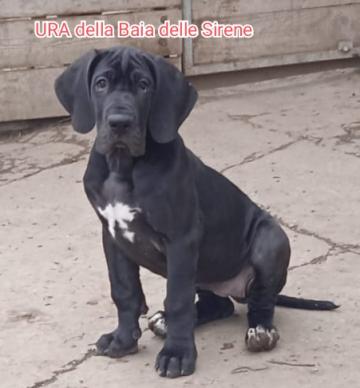 URA splendida cucciola di Alano nero di 3 mesi, è disponibile . URA , che verrà ceduto con 2 vaccinazioni, iscrizione anagrafe , pedigree ,libretto sanitario e certificato di buona salute, ha un ottimo carattere ed è perfettamente socializzata, è quindi adatta sia per chi voglia intraprendere un percorso espositivo sia per chi semplicemente desideri un fedele ed amorevole compagno per sé o per una famiglia con bambini. Potete contattarci telefonicamente per venire a conoscere lei e la sua famiglia