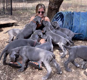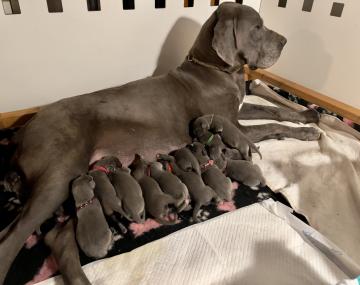 L’Allevamento della Luce Tranquilla, riconosciuto Enci Fci e detentore del Trofeo di Allevamento della Società Italiana Alani, ha disponibili splendidi cuccioli maschi e femmine di ALANO BLU nati il 21 giugno 2022, figli di pluri campioni di bellezza e riproduttori selezionati. I cuccioli potranno essere consegnati dal 30 agosto in poi (con certificato genealogico, microchip, libretto sanitario, due vaccini e sverminazioni), dopo aver trascorso i periodi sensibili in compagnia degli allevatori e della madre, aver effettuato il test di Campbell per individuare le caratteristiche caratteriali innate, socializzato con i loro simili, gli umani, altri animali e con l’ambiente. Hanno una spettacolare genealogia: padre Pl. Ch. IPPON DELLA BAIA AZZURRA (2 volte Campione Europeo e Campione di 7 nazioni, esente displasia hdA ed0, Riproduttore internazionale di qualità Korung approvato dall’EuDDC); madre VATUSSA DELLA LUCE TRANQUILLA (Eccellente e miglior puppy in Raduno, miglior juniores in IDS, esente dispalsia hdA ed0, nata da Riproduzione selezionata Enci). Potete assistere alla crescita dei cuccioli giorno per giorno sul nostro sito web e sulla pagina FB dell’Allevamento Luce Tranquilla. Seguiamo la crescita, l’educazione e l’interazione con la famiglia dei nostri cuccioli con amore per tutta la loro vita.