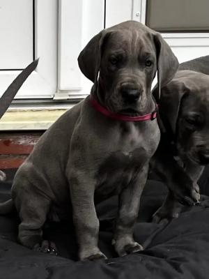 Quattro Meravigliosi cuccioli di Alano Fulvo e Tigrato, 2maschio e efemmina cresciuti in famiglia, di ottimo carattere e ben socializzati con persone, altri cani di taglia grande e piccola ed altri animali, nati da linea di sangue di alta genealogia, vendo ad amanti della razza. I cuccioli verranno ceduti a partire da 90 giorni d'età , vaccinati e sverminati, con microchip applicato e registrato presso Asl-Anagrafe Canina, libretto sanitario, certificato di buona salute e pedigree ENCI-FCI. Per ogni altra informazione o per organizzare una visita in Allevamento per venire a conoscere i nostri cagnoni grandi e piccini, non esitate a contattarci telefonicamente o via mail!.