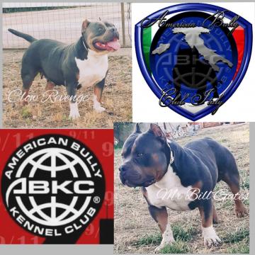 Strepitosi cuccioli di American Bully tricolor di altissima genealogia. I nostri cuccioli crescono in ambiente familiare , amati e coccolati. Saranno rilasciati al 60 giorni di età con primi vaccini, microchip, attestato di Buon a saluta e Pedegree ufficiale della razza ABKC (AMERICAN BULLY KENNEL CLUB). Cuccioli di estrema bellezza e altissimo livello come dimostrano gli ottimi risultati ottenuti all ultimo ABKC di Mantova con tre primi posti . Genitori visibili sul posto in quanto di nostra proprietà. Per info e contatti non esitate a contattarci. Astenersi perditempo , FALSI ACQUIRENTI e non intenditori della razza. (No pit bull, no amstaff, no american bully exotic ) ma American bully 100 % poket . Genitori visibili in foto. Best tricolor Grch Beastro, Gr Ch Lock n load, 2x ch Celly, 3x Phenom, 2x lil rambo, eminent bullies Po, Stive Jobs. Mr Bill Gates Xxx Clow Reveng No regalo No perditempo Solo amanti animali e intenditori della razza Genitori visibili entrambi Solo contatti telefonici 3914215355