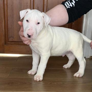 splendidi cuccioli di BULL TERRIER sia la mamma che i cuccioli stanno benissimo. Papà è un barboncino rosso scuro appartiene a un amico di famiglia che è completamente testato per la salute può essere fornito un certificato.