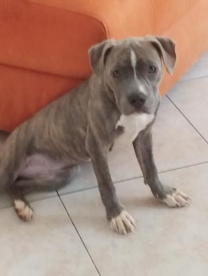 Vendesi cucciola di american bully 4 mesi tigrata occhi verdi stupenda abituata a bambini e a cani vendesi a 500