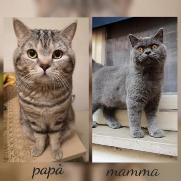 Splendidi cuccioli di british cercano casa. I genitori sono di nostra proprietà, la mamma è una british blue mentre il papà presenta il manto silver tabby, entrambi testati negativi FIV-FELV.