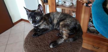 Stella e Sissi, gattine femmine di circa tre mesi, nate in una delle colonie feline sacilesi ma abituate all'uomo e alla vita in casa, cercano adozione. Stella dal manto tartarugato é la più giocherellona , scatenata e coccolona delle due. Ama le coccole e le grattatine al pancino. Sissi , la tigratina, ha perso parzialmente la vista all'occhio destro ma nonostante questo é la più coraggiosa e curiosa delle due. Dolce e coccolona ama i grattini sotto il mento. Sanno usare la lettiera e si cerca adozione in coppia magari in una casa con giardino.