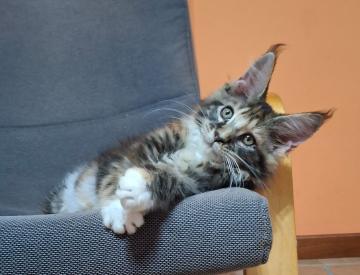 Allevamento amatoriale dispone cucciola di maine coon colore tortie, nata il 14 febbraio. Sarà disponibile dal fine di maggio con ciclo vaccinale, sverminazione e trattamento antiparassitario, pedigree Agi da compagnia. Carattere molto socievole, sempre alla ricerca di coccole e attenzioni. Genitori essenti di malattie genetiche. No perditempo, no curiosi e affaristi. La cucciola è visibile insieme alla mamma, previa appuntamento.