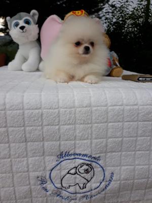 Allevamento riconosciuto ENCI/FCI per la selezione esclusiva, dello Spitz Tedesco Nano (Pomerania) dispone per la vendita di N° 3 cuccioli: 2 femminucce e 1 maschietto nati in ITALIA (Pedigree Italiano). I cuccioli di tre mesi, hanno: il ciclo delle vaccinazioni completo, sverminazioni, libretto sanitario della buona salute del cane, microchip e relativo certificato ASL d'iscrizione all'anagrafe nazionale canina, pedigree. I tre cuccioli in foto, NON HANNO DIFETTI NELLO STANDARD DI RAZZA. I cuccioli sono figli di genitori dell'allevamento di cui portano il nome e quindi visibili nell'allevamento medesimo. L'allevamento inoltre rilascia GARANZIA SCRITTA sulla salute dei cuccioli. Il valore dei cuccioli, NON ECONOMICI, è proporzionato all'importanza del loro pedigree. Non in vendita ad allevatori, non in vendita a negozi di animali.